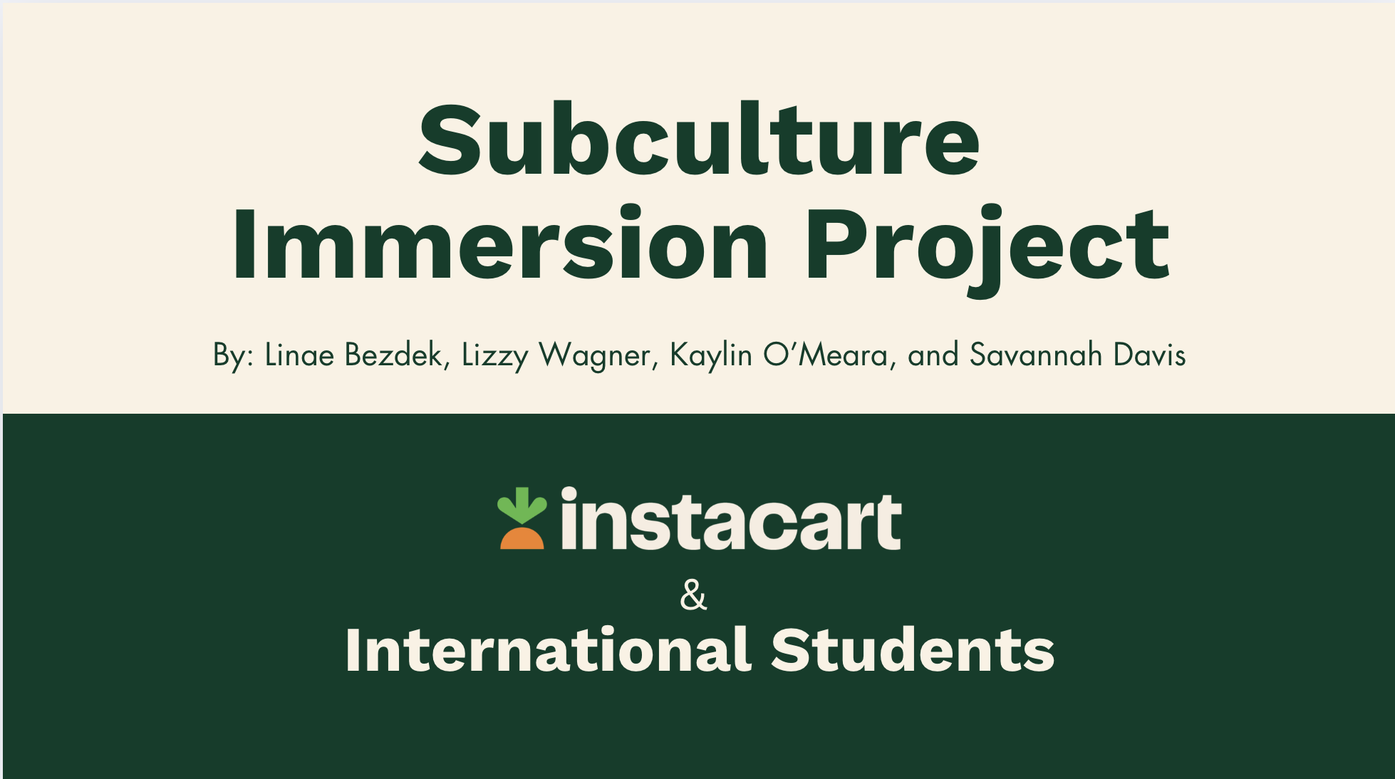 For my MK Understanding Consumers class, I worked on a Subculture Immersion Project focused on improving grocery access for international students through Instacart.
