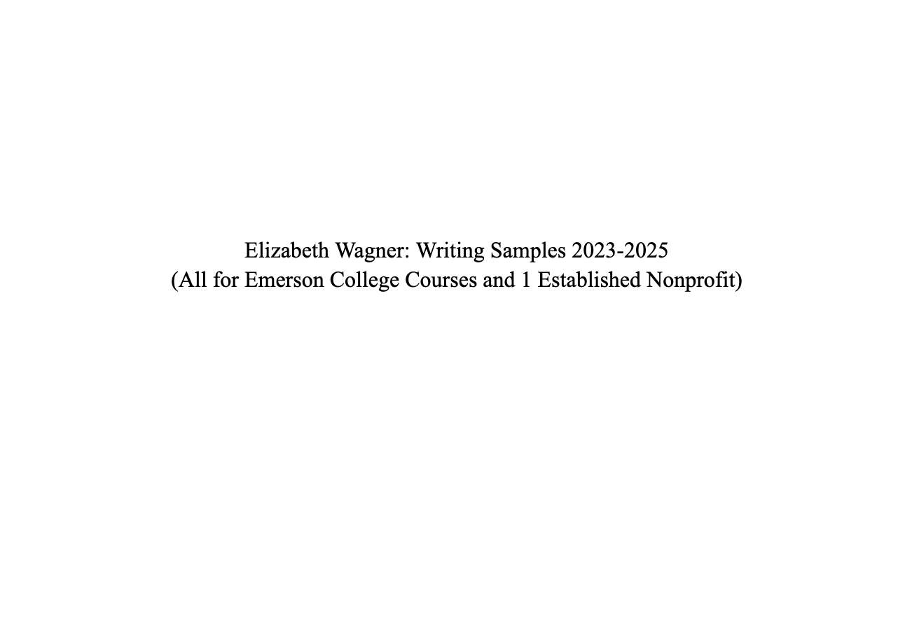 This collection highlights my writing work across Emerson College courses, internships, and nonprofit projects. It includes blog content for the Museum of Fine Arts, Boston, public relations materials for the Boston Celtics, and advocacy communications for the student-run nonprofit On The Same Page Boston. These samples demonstrate my ability to craft compelling narratives, adapt tone for different audiences, and communicate ideas clearly across digital and print platforms. Each piece reflects my growth as a strategic and versatile communicator, capable of producing professional, engaging content for a variety of organizations and campaigns.